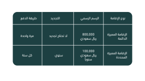 بحسب ما ورد في نظام الإقامة المميزة، فقد حددت الرسوم المالية المقررة للإقامة المميزة كما يلي: